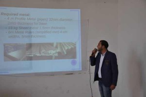 وأكد ان أول خطوة كانت تصميم المشروع على برنامج الرسم الميكانيكي solidworks تم فيه مراعاة ان التصميم يخدم أكثر من فئة وأكثر من طول و أكثر من وزن ويعطي شكل مقبول .